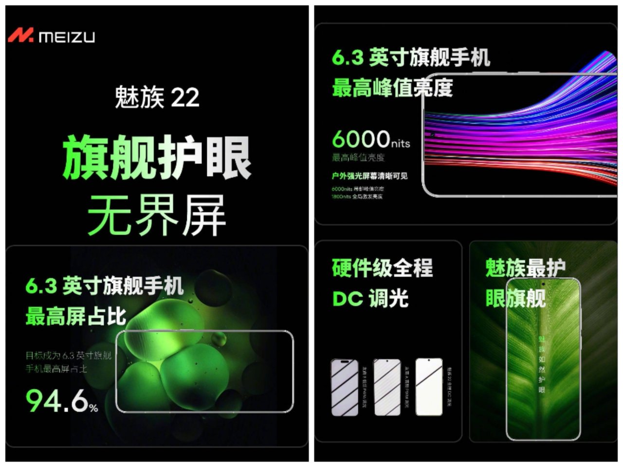 魅族22屏幕:6.3" 1.5K 120Hz 直屏,1.2mm LIPO四等边;